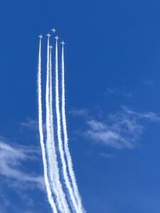 それでも、大空でのブルーインパルスの飛行は迫力もあり、優雅でもあり、綺麗な隊列で、とても感動しました👍