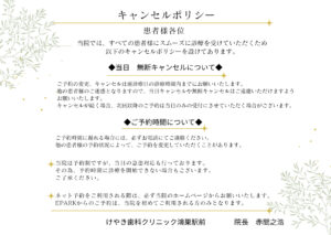 診療をスムーズに進めるため、当院のキャンセルポリシーをまとめました。
