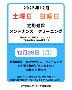 土日の定期健診やクリーニングの枠は年内のご予約が大変難しくなっております🙇♀️