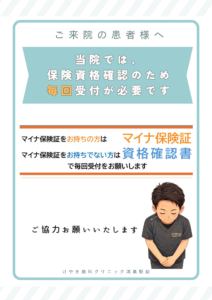 マイナ保険証はカードリーダーがございますので患者様ご自身でのご対応をお願いいたします。